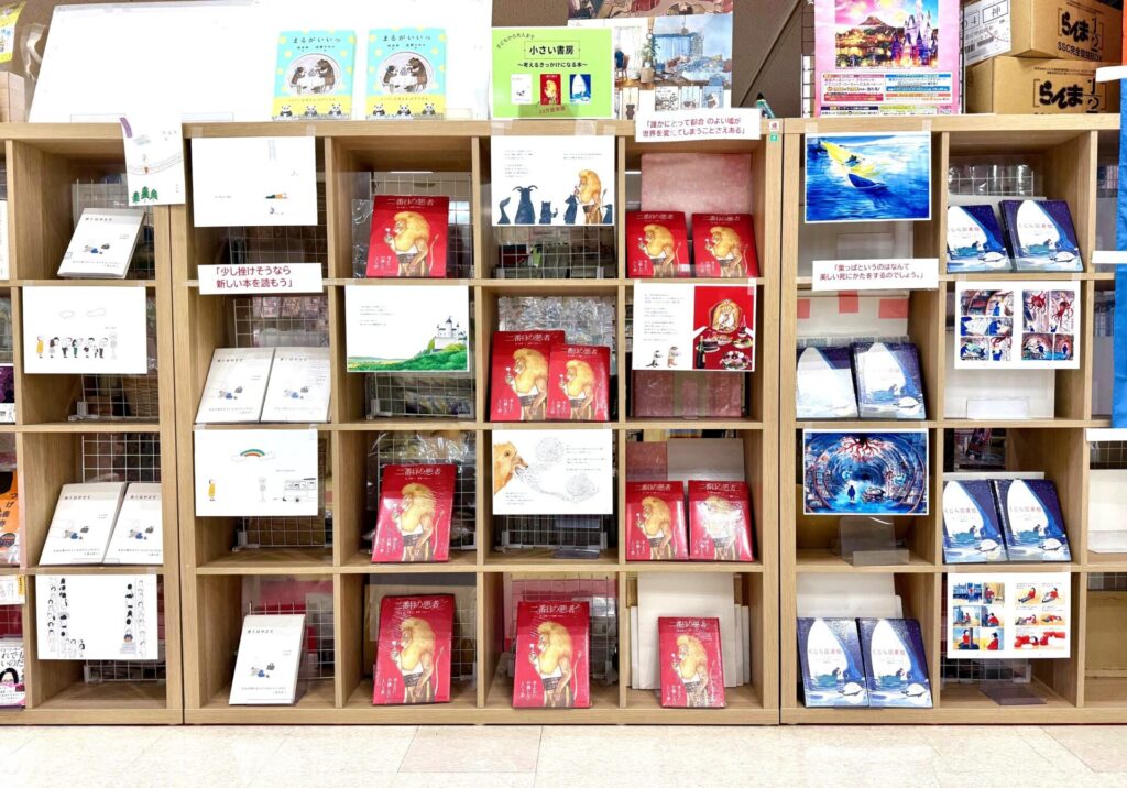 いよいよゴールデンウィークですね。山梨県甲府市の柳正堂書店甲府昭和イトーヨーカドー店では、入り口のマス棚で、小さい書房の「考えるきっかけになる本フェア」展開して下さってます。ありがとうございます!(『二番目の悪者』『くじら図書館』『歩くはやさで』『まるがいいっ』)甲府市の皆さん、お買い物のついでにぜひお立ち寄りください。お隣のドトールで買ったコーヒーを書店の椅子に座ってゆっくり飲めるのもこの書店さんの魅力。大きな窓からは180度山々が見えて気持ちいい時間が過ごせました。雪山も見えましたよ〜